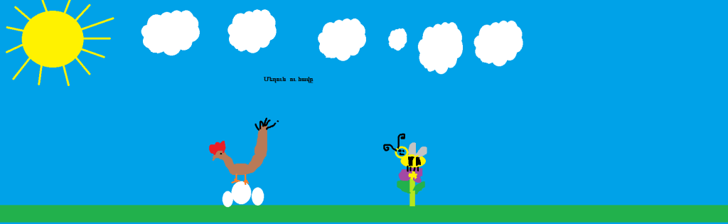 — Իսկ դու, հավիկ — մարիկ, ինչ ես շինում,- հարցրեց մեղուն: