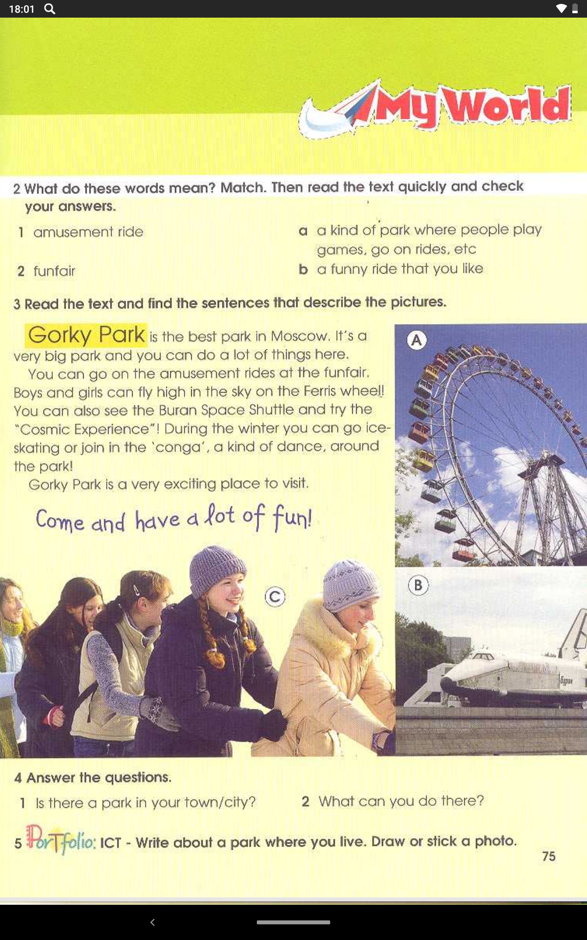 Posted in Անգլերեն Lesson 2 Posted on December 10, 2020December 12, 2020 by davitharutyunyan2012 Ex.1 1. C 2.V 3.A Ex.4 1.Yes there is Monument park in our city. 2.We can play there and eat an ice-cream. Share this: Click to share on X (Opens in new window) X Click to share on Facebook (Opens in new window) Facebook Like Loading... Author: davitharutyunyan2012 View All Posts