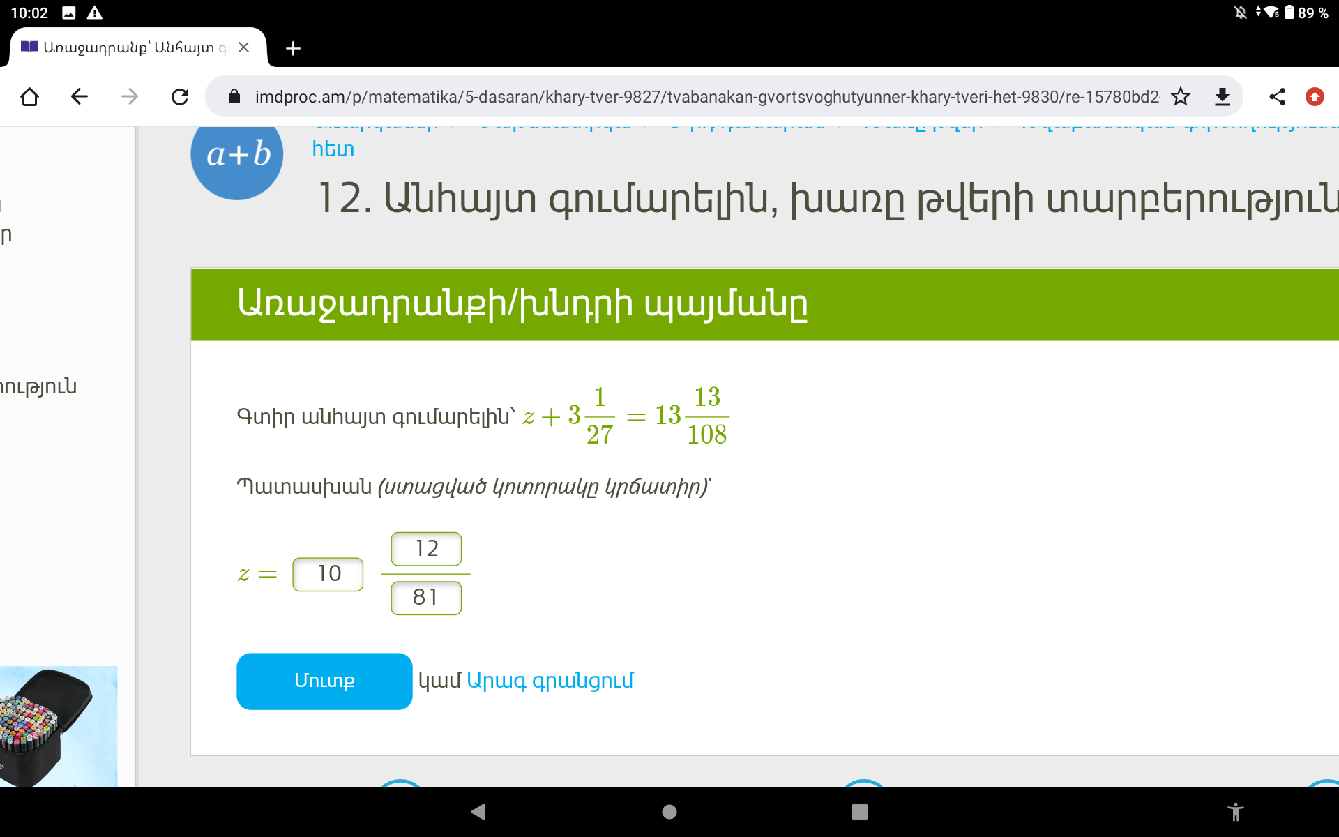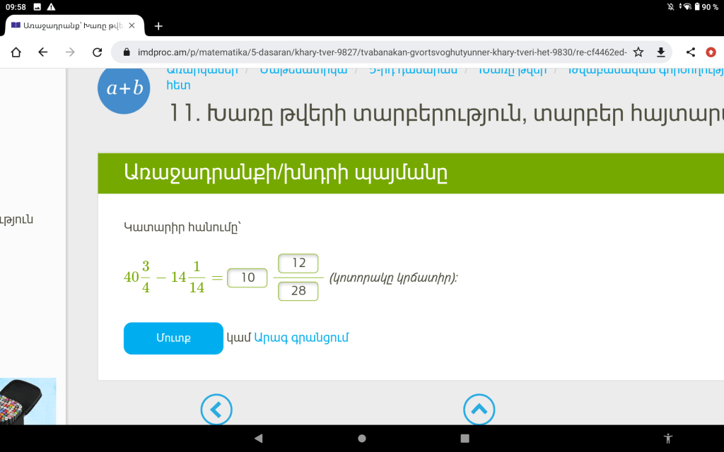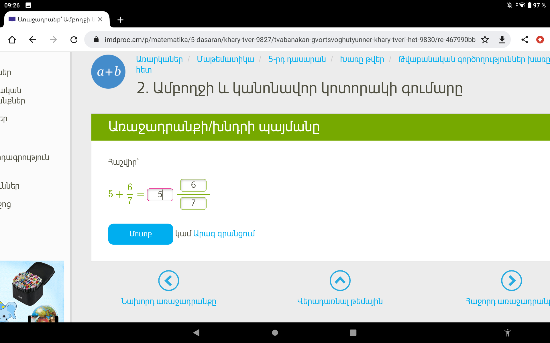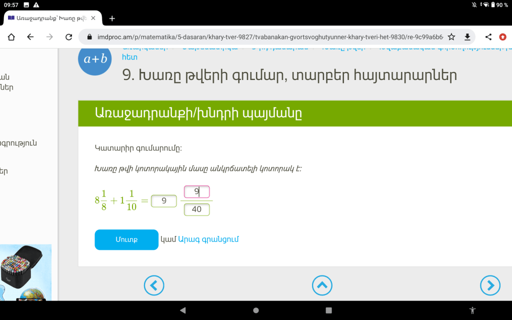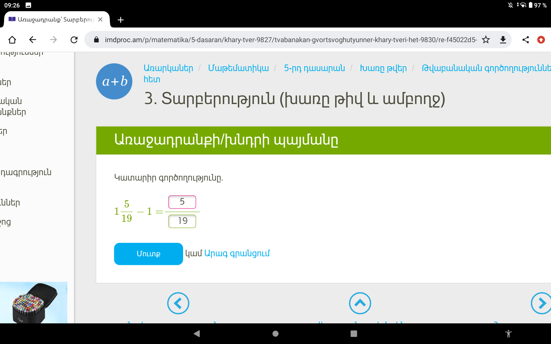 Posted in Մաթեմատիկա 6 Թվաբանական գործողություններ խառը թվերի հետ Posted on September 24, 2022September 24, 2022 by davitharutyunyan2012 Share this: Click to share on X (Opens in new window) X Click to share on Facebook (Opens in new window) Facebook Like Loading... Author: davitharutyunyan2012 View All Posts