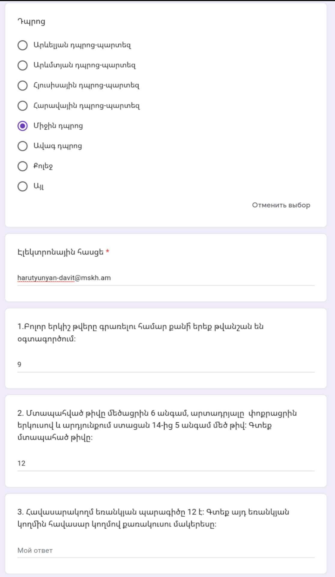 Posted in Մաթեմատիկա 6 Ֆլեշմոբ մաթեմատիկայից Posted on May 17, 2023May 17, 2023 by davitharutyunyan2012 Share this: Click to share on X (Opens in new window) X Click to share on Facebook (Opens in new window) Facebook Like Loading... Author: davitharutyunyan2012 View All Posts