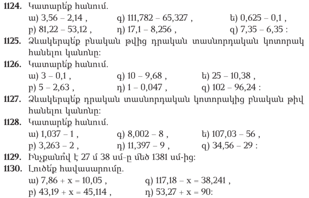 Ա) 1,42 բ) 28,1 գ) 46,455 դ) 8,844 ե) 0,525 զ) 1