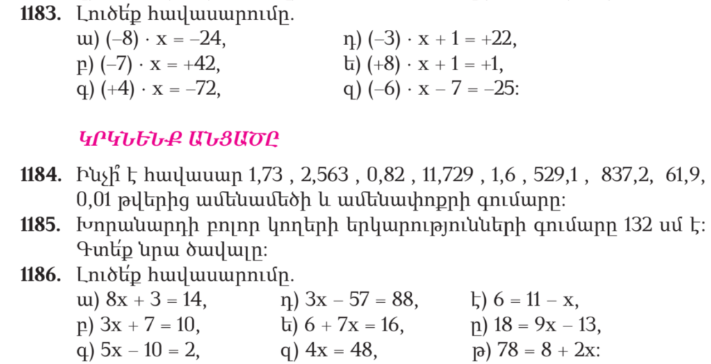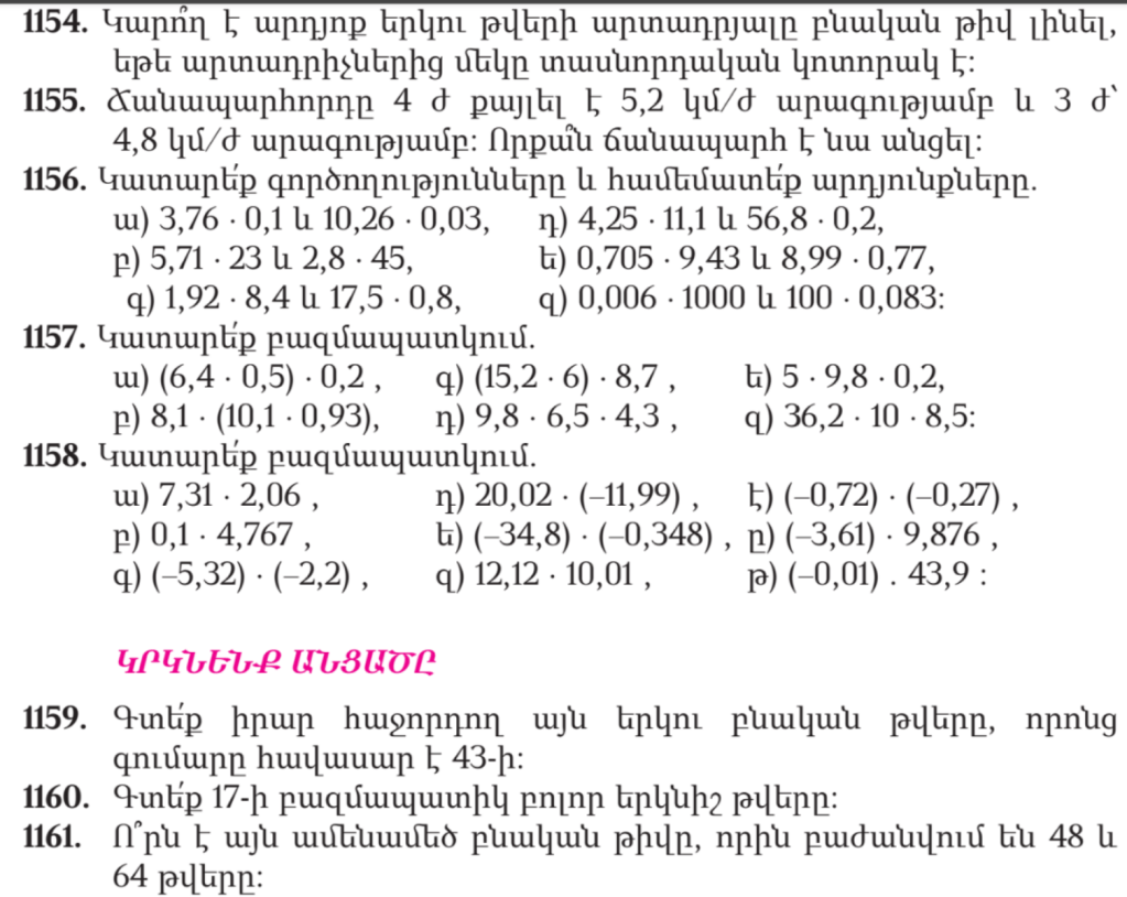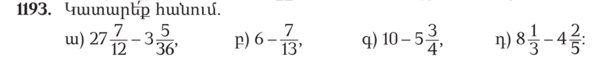 Ա) 1 3/8 բ) 1 գ) 2 2/5 դ) 48 1/3 ե) 1 3/7 զ) 12 է) 5 ը) 3 4/9 թ) 35