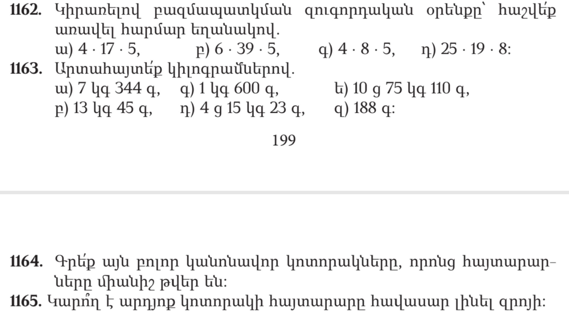 Ա) 7,344 կգ բ) 13,045 կգ գ) 1,6 կգ դ) 415,023 կգ ե) 1075,11 կգ զ) 0,188
