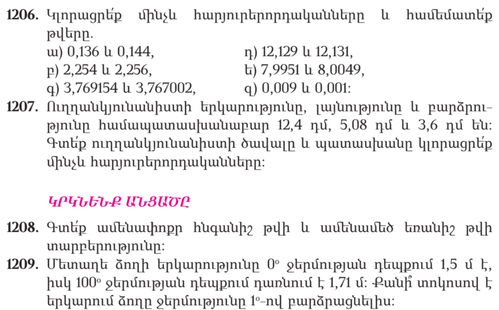 Ա) 4,184 բ) 4,256 գ) 0,0015 դ) 1,5 ե) 0,05 զ) 0,42 է) 3,741 ը) 12,07 թ) 0,567