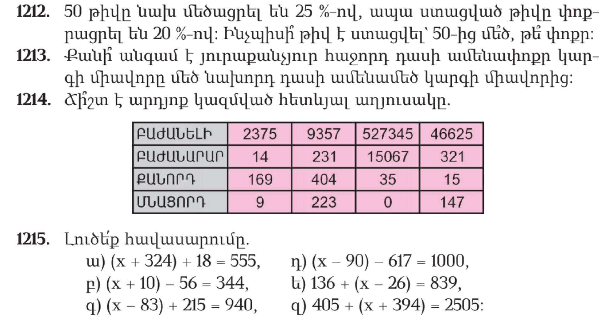 Ա) 4000 բ) 130 գ) 2200 դ) 3500 ե) 120 զ) 1200 է) 2400 ը) 1510 թ) 44,51