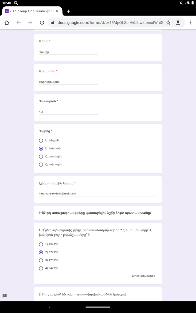 Category: 4-րդ դասարանցիների գիտելիքների ստուգում 2021